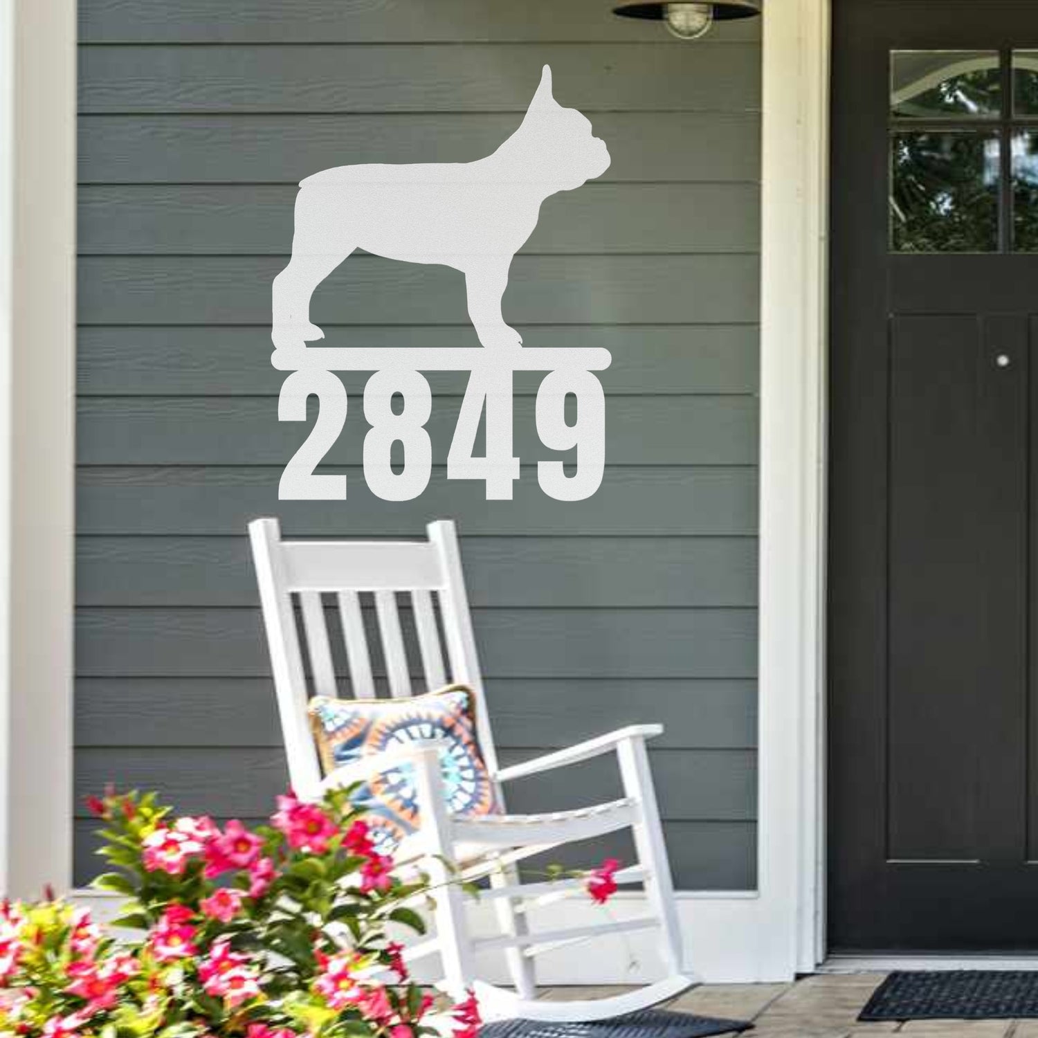 Custom French Bulldog Metal Address Sign – Patriotic American Flag Home Décor