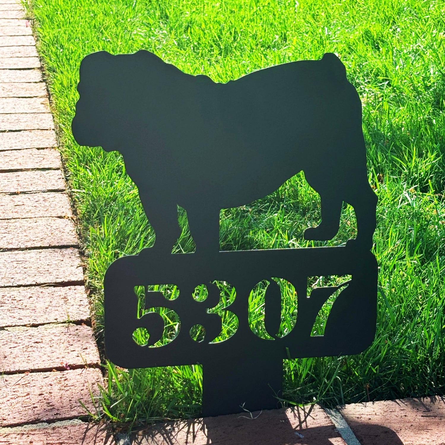 English Bulldog House Number Lawn Sign